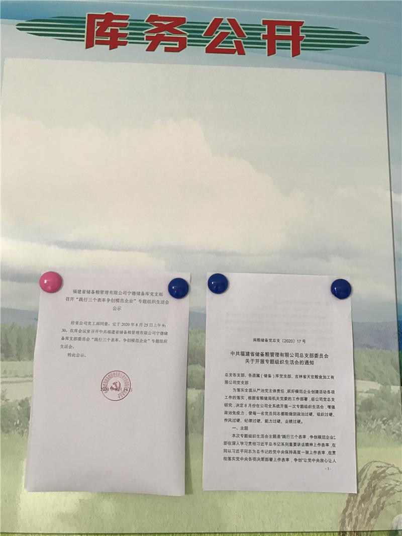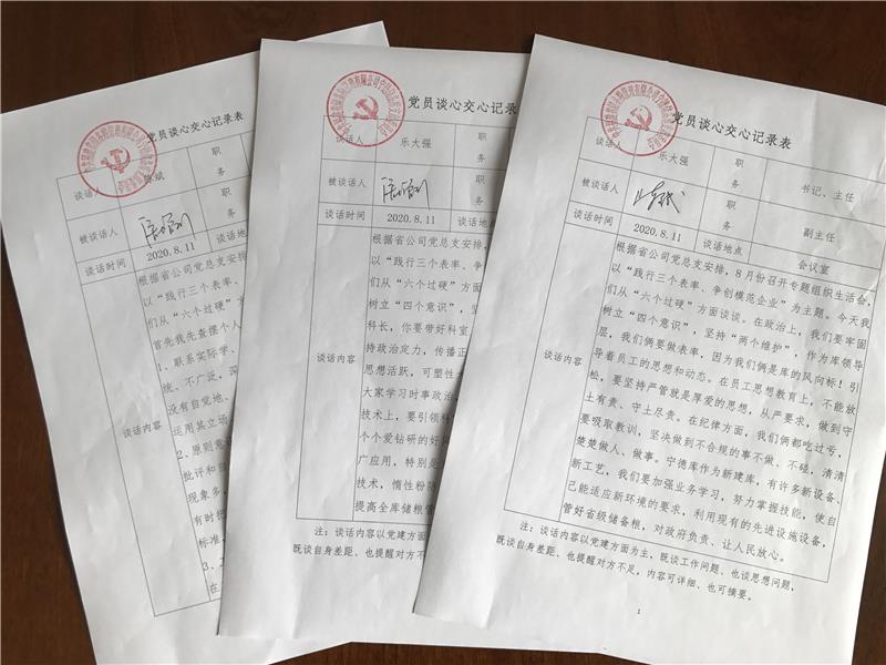 根據(jù)省公司黨總支的工作部署,寧德儲備庫黨支部認(rèn)真開展“踐行三個(gè)表率,爭創(chuàng)模范企業(yè)”專題組織生活會。首先,認(rèn)真組織黨員干部學(xué)習(xí)省公司創(chuàng)建“讓黨中央放心讓人民群眾滿意”的儲備糧管理模范企業(yè)實(shí)施方案,結(jié)合庫實(shí)際,制定實(shí)施方案。其次,按要求認(rèn)真抓好理論學(xué)習(xí)工作。第三,廣泛征求群眾和服務(wù)對象意見。第四,班子成員之間、黨員之間深入開展談心談話活動。第五,認(rèn)真梳理、查擺存在的問題。在此基礎(chǔ)上,召開專題組織生活會,全體黨員逐一深入剖析自己,進(jìn)行了批評和自我批評,達(dá)到了互相提醒和幫助,共同提高的目的。