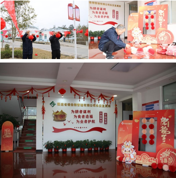 為弘揚中華優(yōu)秀傳統文化,營造喜慶、文明、祥和的節(jié)日氣氛,讓堅守一線的員工感受到祥和、愉快、溫馨的“家”的氛圍,2月6日下午永安庫組織全體員工,利用春節(jié)紅色喜慶元素,扮靚庫區(qū)和綜合樓,努力營造歡樂祥和、團結向上的新年氛圍。為營造好龍年節(jié)日氣氛,永安庫提前謀劃、精心部署,按照方式新、氛圍濃、效果佳的總體要求,本著厲行節(jié)約、不鋪張浪費的原則,在庫區(qū)綠化帶懸掛紅燈籠和彩條旗,在綜合樓大門懸掛大紅燈籠、門廳布設迎新年造型,在辦公室、會議室、接待室的綠植上掛“中國節(jié)”“?!焙汀肮зR新禧”等字樣的紅包袋,營造年味,讓“家”靚起來,讓心暖起來。