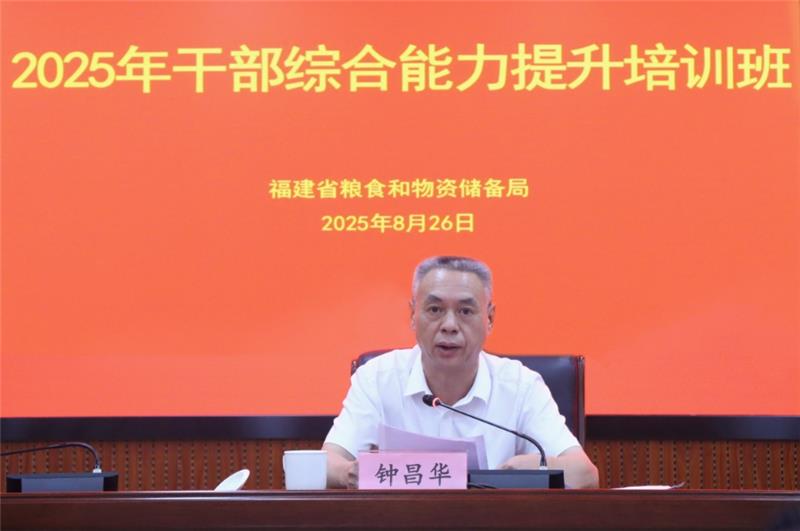 為推動干部教育培訓(xùn)常態(tài)化,8月25日至28日,省糧儲局在福州舉辦干部綜合能力提升培訓(xùn)班。省發(fā)改委黨組成員,省糧儲局黨組書記、局長鐘昌華出席開班儀式并作動員講話。培訓(xùn)班以視頻形式舉辦,局機(jī)關(guān)全體干部、局屬各單位代表等在主會場參加培訓(xùn),省儲備糧公司及各直屬庫干部職工在分會場參加培訓(xùn)。