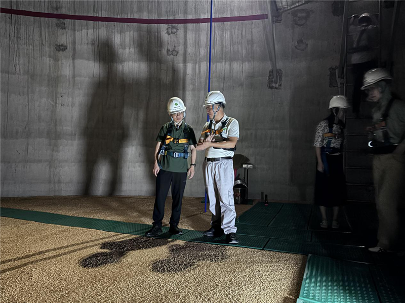 調研組實地走訪庫區(qū),重點察看淺圓倉、工作塔等設施運行狀況,詳細了解淺圓倉的設計特點、進出倉作業(yè)流程及電子貨位卡等信息化管理手段的實際應用情況,并圍繞糧食儲備管理、綠色儲糧技術應用和信息化建設等議題展開務實交流,并就進一步加強兩地經驗互鑒、提升儲糧管理水平達成共識。